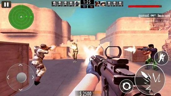- 热血突击战手游中高清精美的游戏画面,丰富的游戏地图,多达六种的游戏模式,在游戏中你将被分配到不同的地方参加战斗,你需要时刻保持警惕,观察你的四