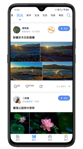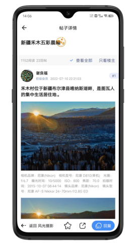 1、进入软件后点击下方的“论坛”,里面会有很多用户发布自己的摄影作品。
