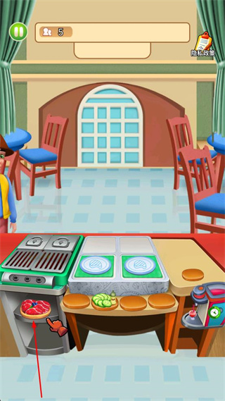 2、在1-1关卡准备界面确认关卡信息,按照提示找到烹饪区域内的食材,根据指引操作对应的烹饪设备处理食材。