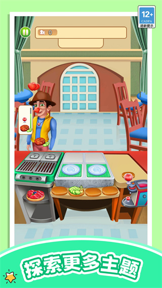 轻松当厨神是一款趣味满满的模拟烹饪类游戏,采用Q版卡通画风打造清新画面,核心是制作各类美味食物满足不同顾客需求,需快速完成制作流程,不能让顾客久等,按时完成订单就能提升店铺好感度,玩法简单易上手,能感受亲手烹饪和经营小店的十足乐趣。