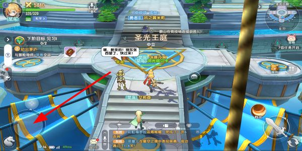 2、摇杆移动角色找到对应的NPC,按照界面提示与其交互,推进主线任务进度,解锁后续的游戏内容和功能。