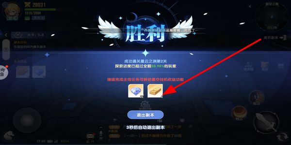 4、通关试炼副本后会显示胜利,查看获得的奖励道具,点击退出副本按钮离开当前场景,结束本次副本挑战。
