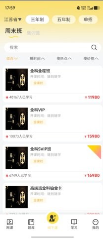 根据自己的学习需求和薄弱科目,在APP中查看各科目的课程介绍,选择适合自己的学习内容。