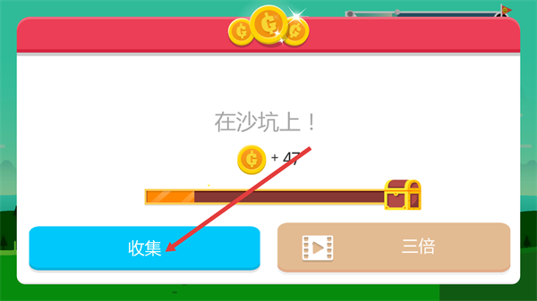 4、击球结束后,出现结算弹窗时点击【收集】按钮获取【+47】金币奖励,也可选择【三倍】看视频获更多奖励。