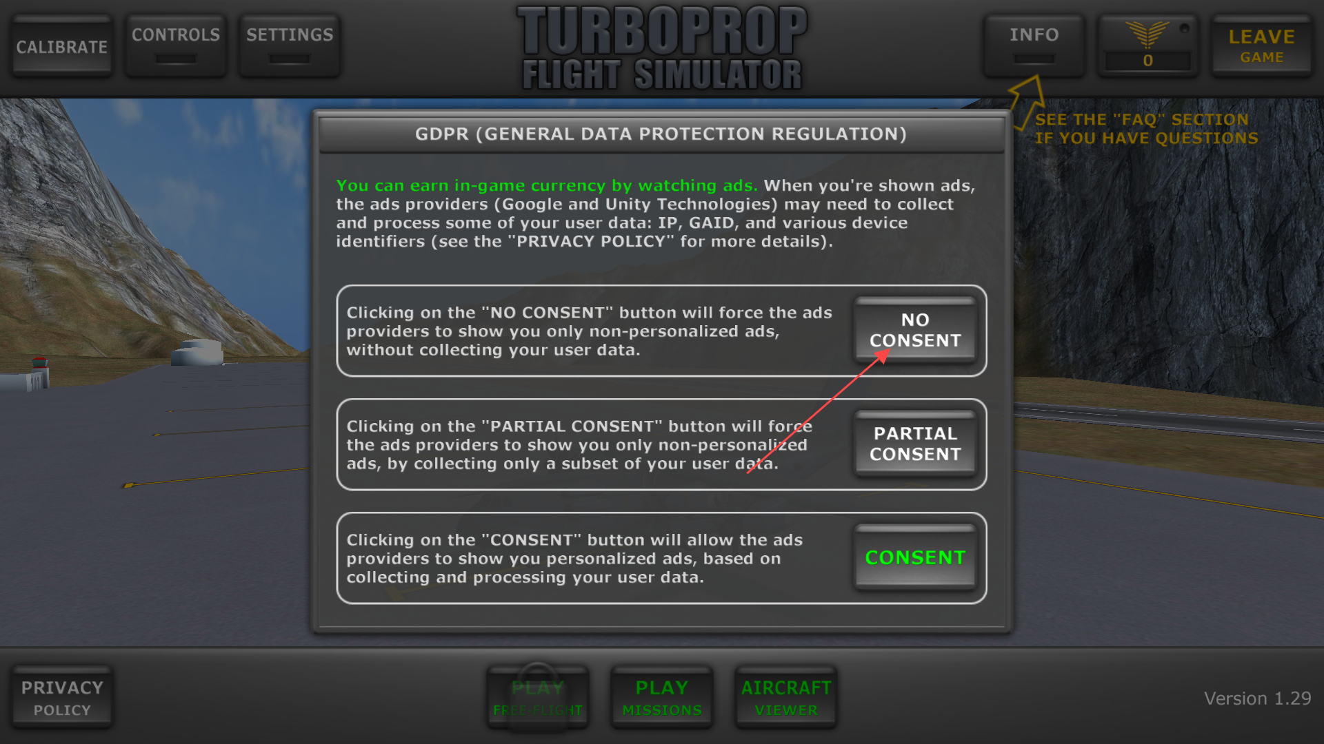 2、进入主页面,我们忽略右上角的提示,点击下方的【play】开始起飞。