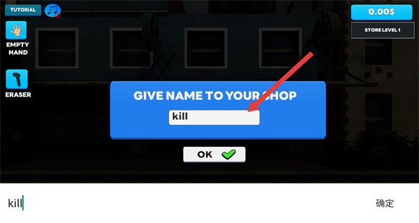 2、在超市命名界面中,点击输入框填写店铺名称后点击OK,完成店铺命名。