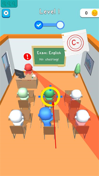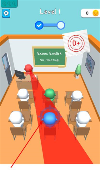 2、根据提示拖动蓝色角色,向周围同学作弊获取答案。