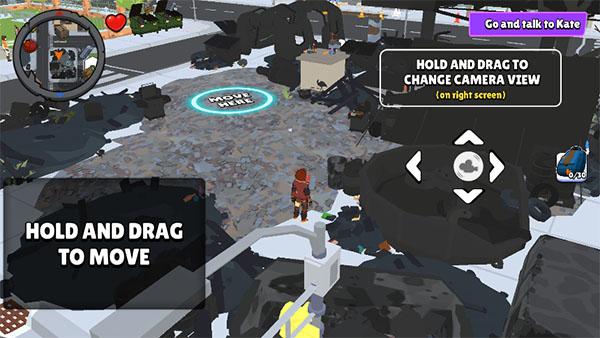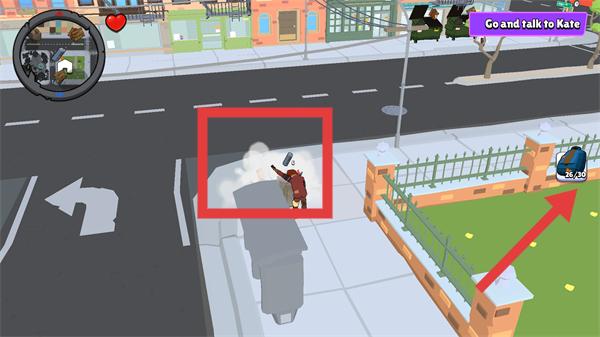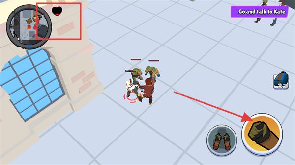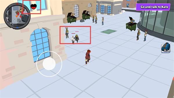 1、继续向目标“Kate”移动,途中遇到聚集的角色群体,可通过左侧摇杆调整移动方向。