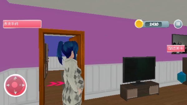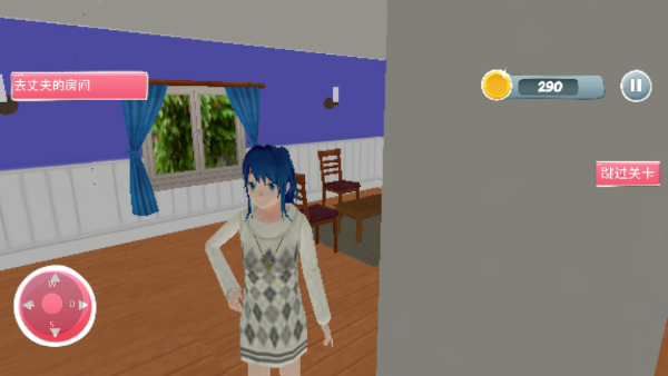 3、操控角色移动到指定区域,点击互动按钮触发操作,同时可通过方向按钮调整角色位置。
