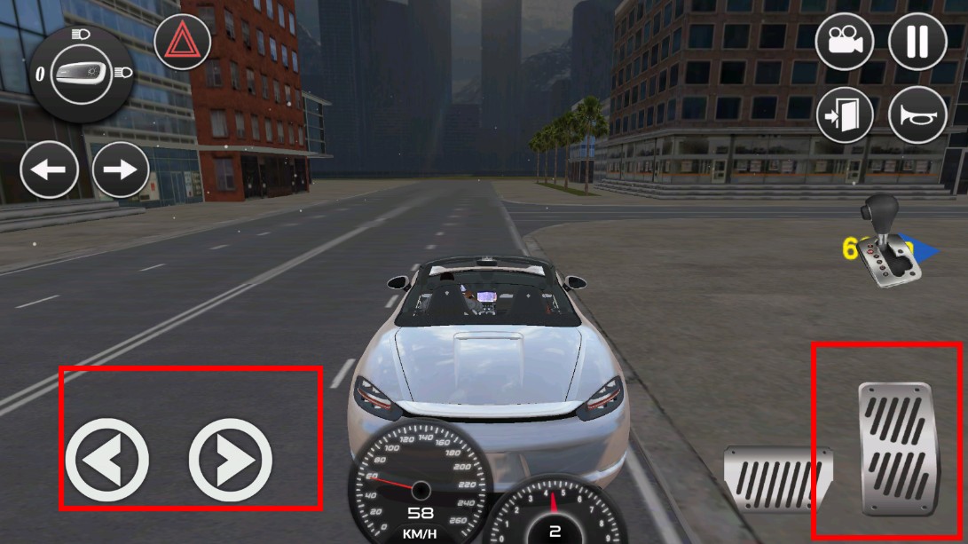 1、基础驾驶操作:左侧控制方向盘转向,右侧控制油门刹车,简单直观的操作方式带来舒适的上手体验。