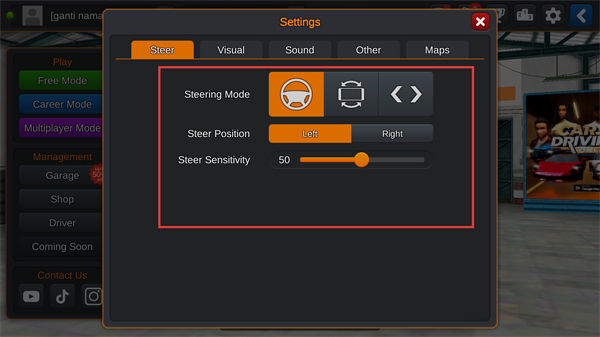 1、在设置界面,根据个人操作习惯调整转向模式、转向位置和转向灵敏度,优化驾驶操控体验。