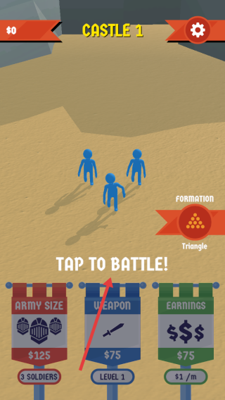 1、进入游戏,点击【TAPTOBATTLE!】,开启战斗。
