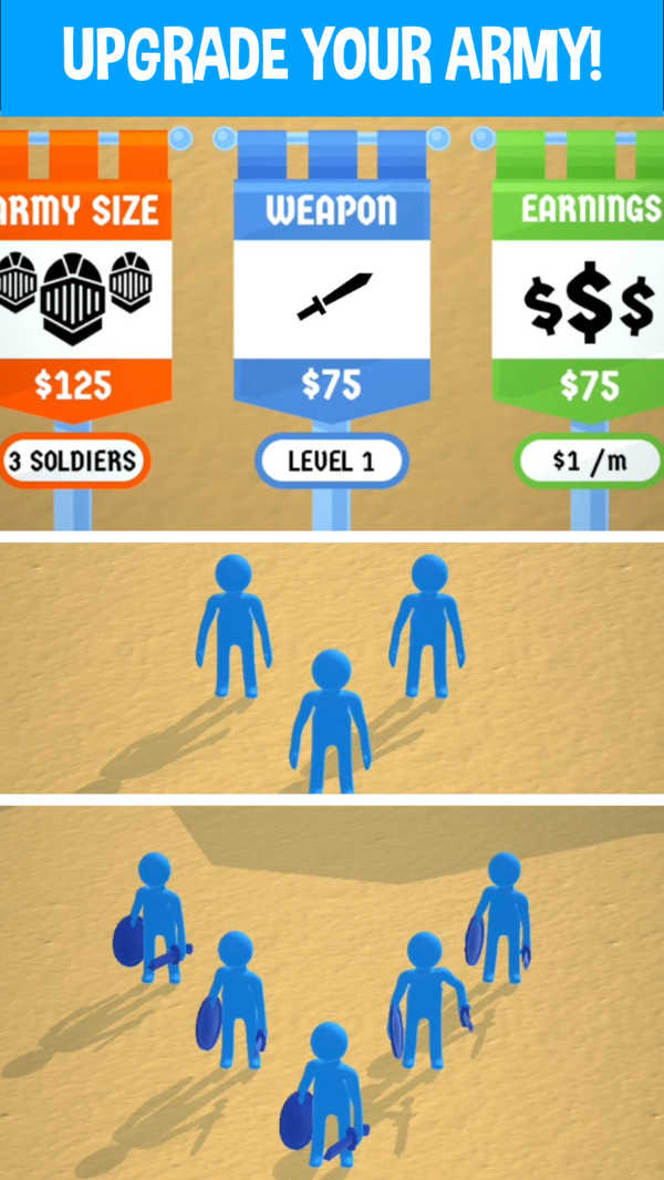 2、指挥蓝色士兵,击败橙色敌人即可通关。