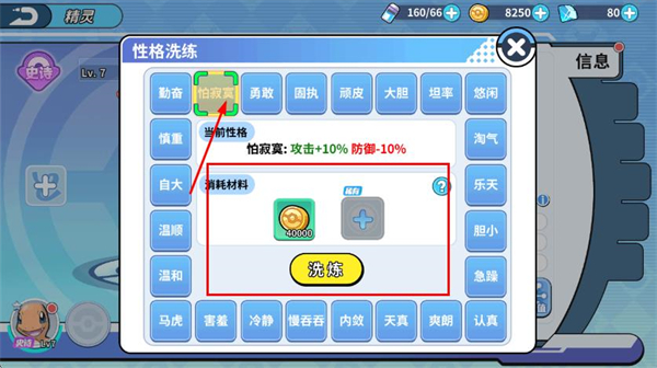 3、在性格洗练界面选择目标性格,消耗对应材料后点击洗练,完成性格修改。