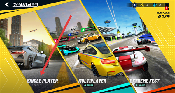 2、在模式选择页,点击SINGLE PLAYER,选择单人竞速模式,进入赛道匹配环节。