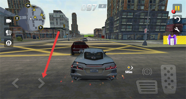 3、进入赛道后,通过右侧操控键控制车辆速度,适应赛道环境,保持行驶节奏。