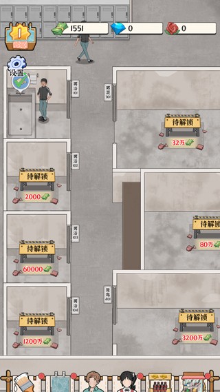 1、点击标有【待解锁】区域,推进浴场设施的建造进度,解锁新的服务区域。