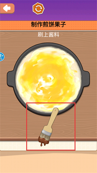 4、最后用【酱料刷】均匀刷上酱料,让每处覆盖酱料,使煎饼味道更浓郁且美味。