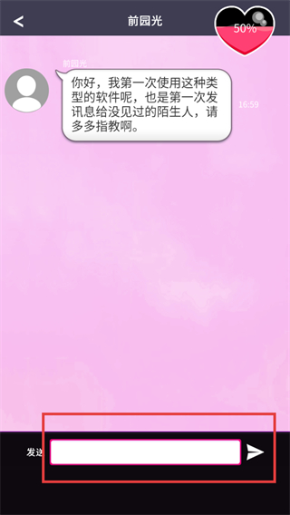 2、在【回复输入框】中输入礼貌的回应,如【你好,请多指教】,能有效推进与【前园光】的对话进程。