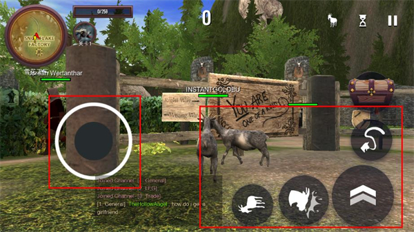 3、通过左侧的虚拟摇杆控制山羊移动,右侧的按键可触发山羊的动作,在场景中自由互动。