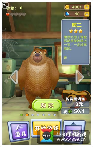 你们以为游戏就只有熊大、熊二这两个角色这么简单吗?那就错啦,在商店系统里,各种恶搞的熊宝花样百出:美熊王、功夫熊大、李小熊、太空熊、圣诞熊等熊宝宝,不仅造型各异,每只熊都还有属于自己的独特技能,本领强大。