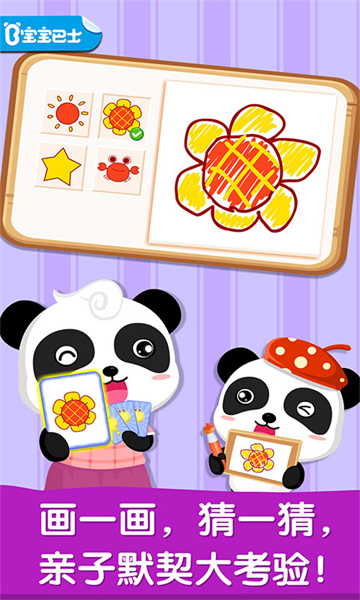 - 宝宝画妈妈猜是由宝宝巴士推出的一款亲子互动手机游戏,在游戏中宝宝作画有两种方式,一种是按照参考图来描绘,还有一种是自己创造,非常锻炼宝宝的绘画