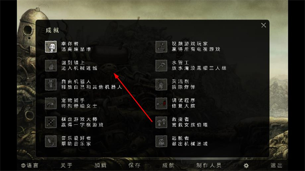 2、在弹出的菜单中选择成就选项,进入成就页面。
