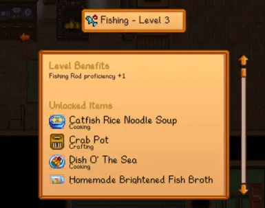 1、一个全面的两阶段菜单系统,让你查看所有技能等级奖励,包括制作配方、烹饪配方和等级奖励。