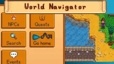 《星露谷物语》世界导航器MOD,世界导航器是一个游戏内导航系统。你怎么去......那个位置、那个 NPC、那个任务保管箱、那个事件(修改或原版)等等?World Navigator 的主动指导或书面指示可以提供帮助。感兴趣的小伙伴快来3DM下载吧!