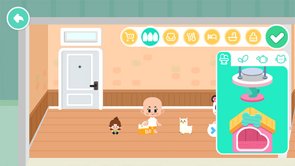 这里也没有剧情限制,宝宝能自由发挥,随意布置双层小别墅:将庭院打造成“萌宠之家”,或者把双人沙发摆放在玄关处……