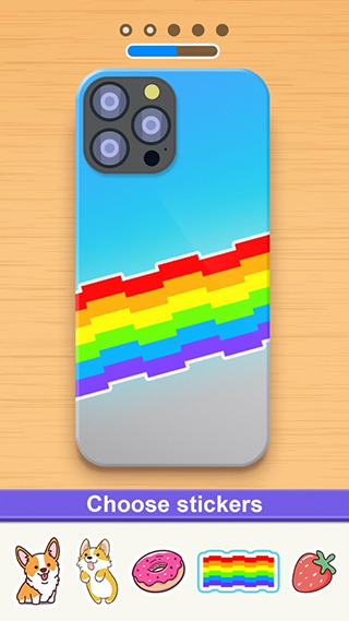 2、游戏中的操作从最简单的喷色、固色开始,逐渐加入各种丰富的元素,一点一滴的帮助玩家熟悉游戏的操作,再逐步开启了贴纸、装饰品等功能后,可以随心所欲的发挥自己的想象力,打造出绚烂多彩的个性化手机壳作品。