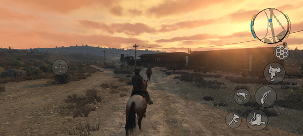 荒野大镖客救赎苹果版是一款开放世界动作射击手游,英文名叫Red Dead Redemption,玩家在游戏中将来到美国西部,并扮演男主“约翰·马斯顿”,你需要跟随剧情引导来探索这个西部牛仔世界,期间你会遇到各种各样的NPC人物,他们各自有着不同的经历和剧情,并会根据玩家的善恶行为来做出不同的反应。同时游戏内设计了多样的武器道具,如拳头、匕首、手枪、步枪、可通过完成任务来解锁,并且玩家在游戏中还可以骑马,加上真实的地图场景,完全仿佛身临其境一般。另外,荒野大镖客救赎ios版还提供了普通、硬核、不死梦魇三种难度选择,玩家可根据自己的喜好来选择,以此获得最佳的游戏体验。