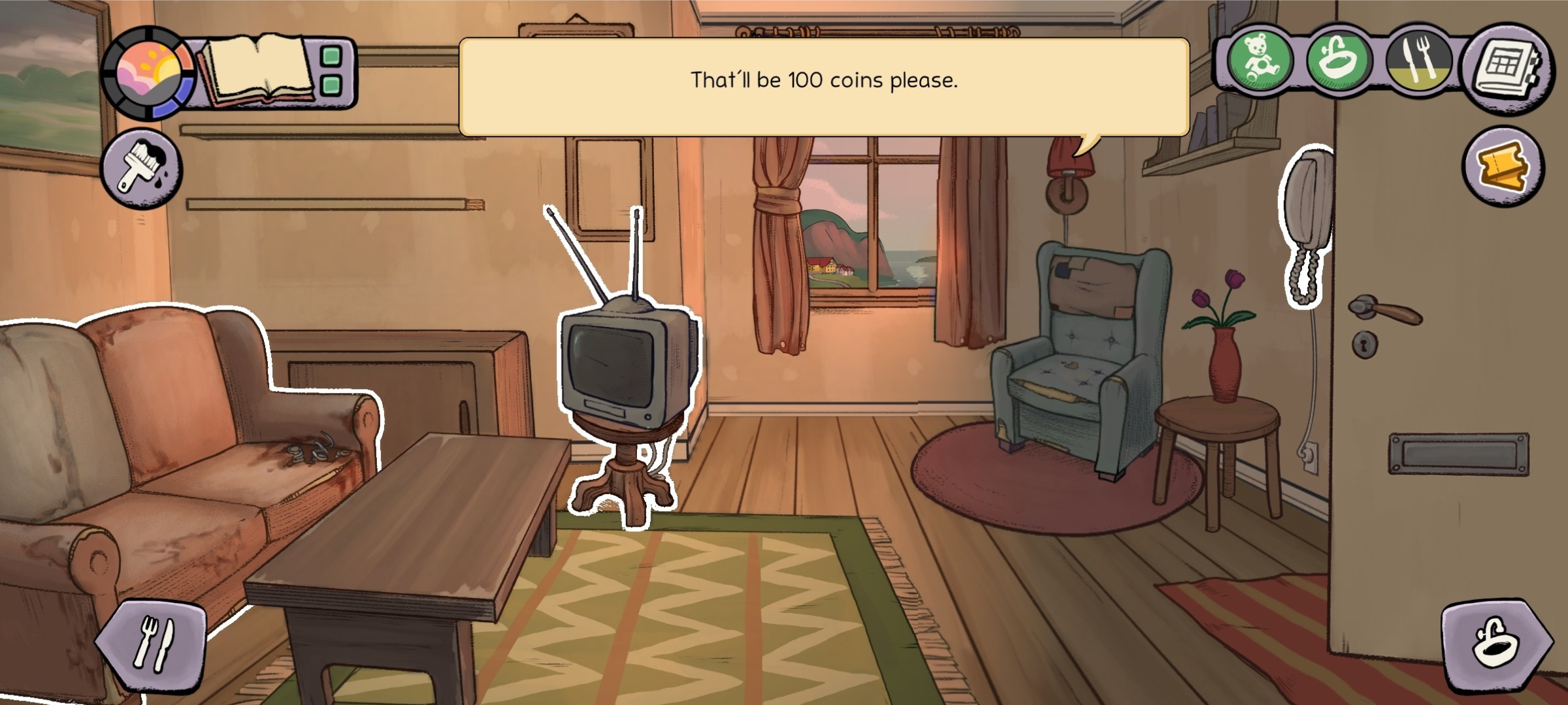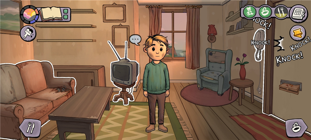 5、回到客厅可以看到有人在敲门,点击门然后付钱就可以了。