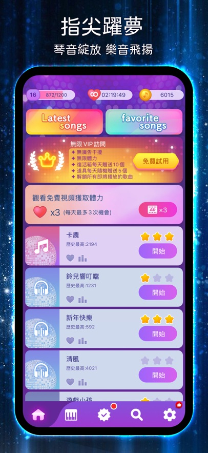 这是时下最流行的休闲、娱乐、打发时间神器!全新玩法、精美界面、自由添加歌曲,相信每个音乐达人都会爱不释手!