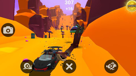 4、还需通过巧妙的下山线路,拾取一路上随机散布的金币,从而不断将其累积,购买解锁出更多可控制的帅气轿车。
