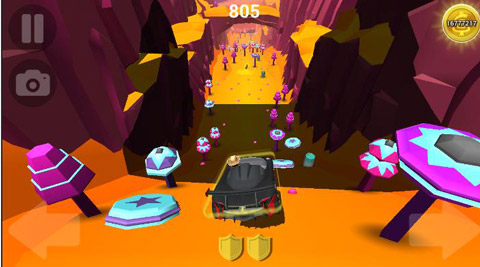 2、游戏中玩家控制左右按钮控制车辆的方向,中途可以获取金币和道具。