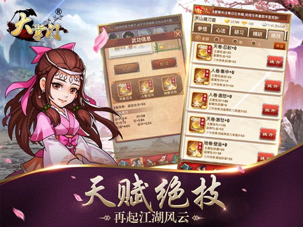 2、高度还原英雄绝学武功,自由养成弟子,属性全盘掌控