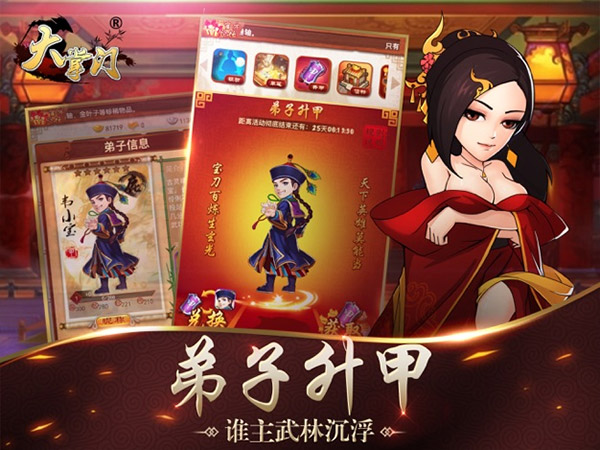 3、闯江湖获得威望,威望可以提升掌门等级,开启更多新的功能