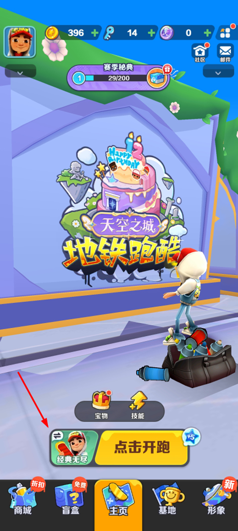 1、打开地铁跑酷ios版,进入游戏后点击开跑;