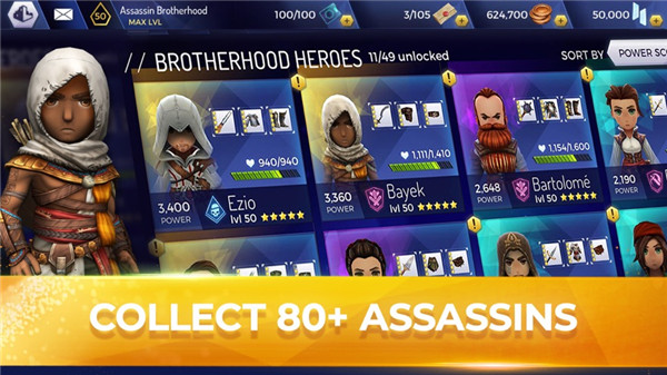 (2)与超过 60 名英雄组队,包含刺客教条系列的传奇角色,以及刺客信条:燎原中的独家角色。