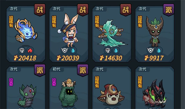 宠物类型丰富,植物、动物、元素、超能、巨魔、混沌、神秘系别等。