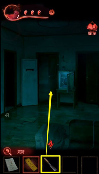 4、根据女鬼的指示,在地板中找到【符咒】。