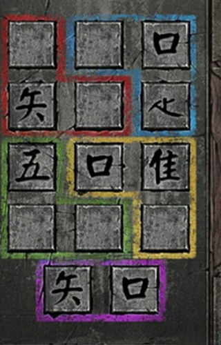2、将石像扔进去,使用火柴,获得线索一。根据线索一,返回地宫内,点击桌子上的钱币,获得线索二。破解图案如图所示,获得:刺绣