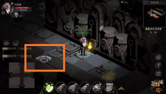 6、深渊里有一个如图的道具,在地图上和法阵是一样的标志,可以延时一分钟,总时间可以超十分钟,例如九分四十秒吃了一个道具,就会变成十分四十秒。