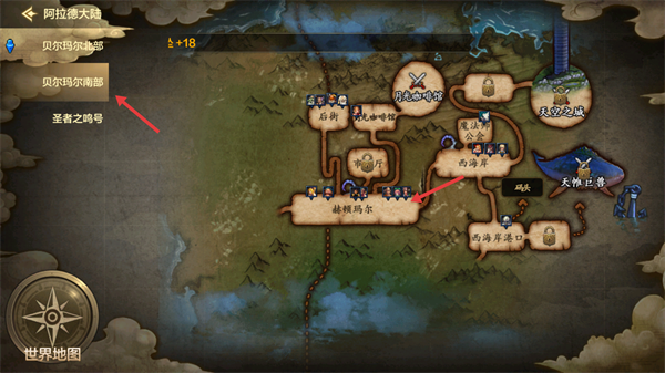 1、打开世界地图,选择【赫顿玛尔】区域,前往该城镇。