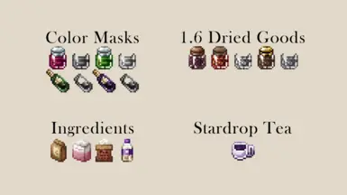 1、该模组为果冻、泡菜、果汁和葡萄酒添加了颜色蒙版,以便它们的颜色根据所使用的作物正确变化。