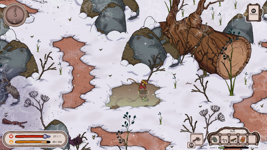《林间暖巢》设定在一只小老鼠回到其童年家园的情境中。老鼠发现家园已经破败不堪,而原本应该照顾它的姨妈也失踪了。玩家需要帮助这只小老鼠修复家园,探索周围的冰封荒野,收集资源,并解开姨妈失踪的谜团。