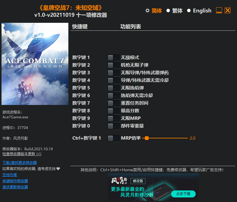 >>>《皇牌空战7:未知空域》十一项修改器风灵月影版