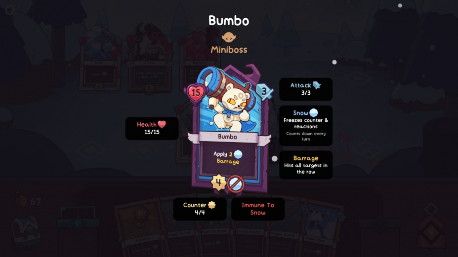 雪居之地(Wildfrost)是一款回合制卡牌战斗肉鸽游戏。收集可爱萌萌卡牌英雄,元素装备,装备强力护身符,在与冰霜的战斗中展现你的威力!游侠网分享雪居之地下载,打造专属于你的完美牌组!