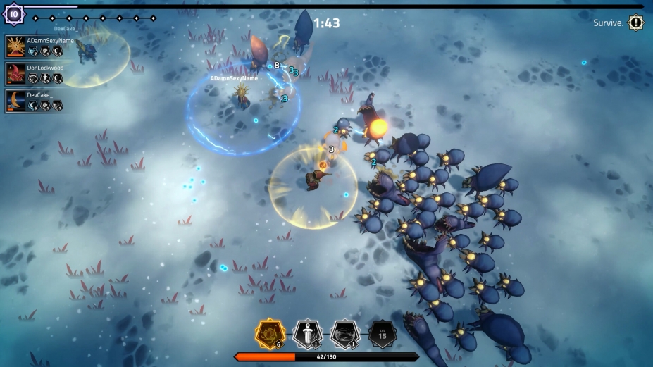 游戏结合了生存游戏的玩法和多人混战的疯狂,要求玩家一起对抗大量的怪物,完成任务并共同升级法术。